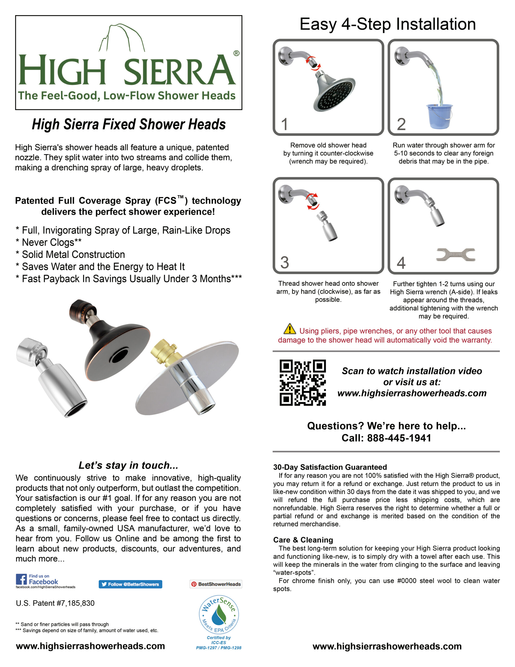 High Sierra's Half Dome Fixed/Rain Shower Head Installation Video