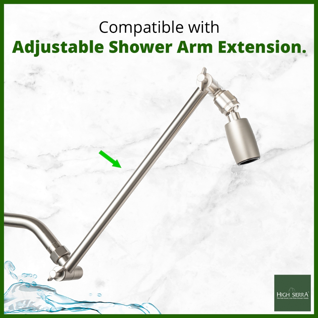 I installed the first with a 9″ extension arm on a 3-way diverter that has become the standard setup within my home. I’ve got 2 currently installed, one of which is a replacement to a complete setup I lost to my son following a visit home.I’ve got a portable 2.5 GPM shower head on the bottom connection out of the 3-way diverter that can’t match the shower experience provided by the High Sierra using only 60% as much water. I had to do my own flow test to prove to myself it really is only 1.5 GPM. Get a 5-gallon bucket and a watch to test for yourself. Amazing design, you won’t be disappointed.High Sierra now offers a 1.5 GPM portable model that I plan to use as a replacement to my current 2.5 GPM portables.