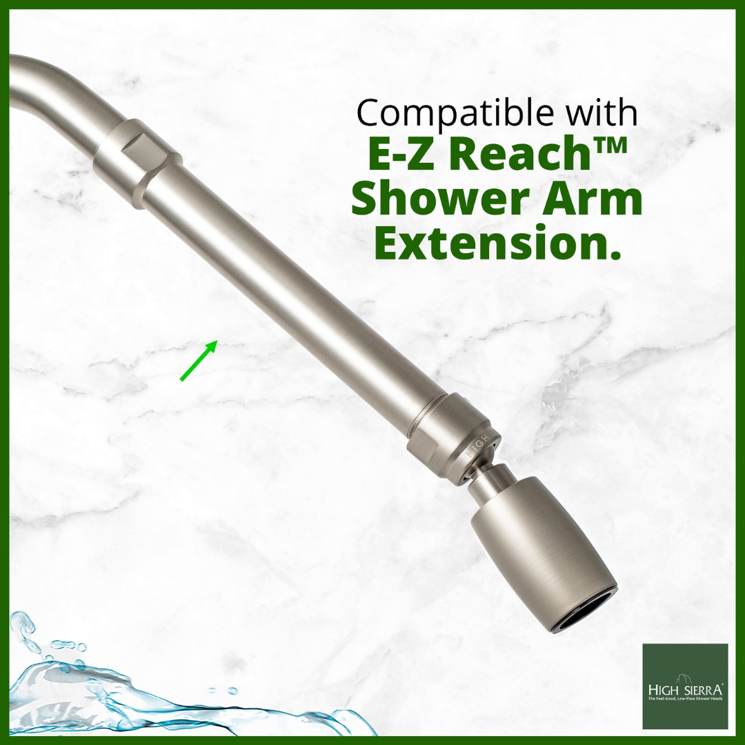 I installed the first with a 9″ extension arm on a 3-way diverter that has become the standard setup within my home. I’ve got 2 currently installed, one of which is a replacement to a complete setup I lost to my son following a visit home.I’ve got a portable 2.5 GPM shower head on the bottom connection out of the 3-way diverter that can’t match the shower experience provided by the High Sierra using only 60% as much water. I had to do my own flow test to prove to myself it really is only 1.5 GPM. Get a 5-gallon bucket and a watch to test for yourself. Amazing design, you won’t be disappointed.High Sierra now offers a 1.5 GPM portable model that I plan to use as a replacement to my current 2.5 GPM portables.