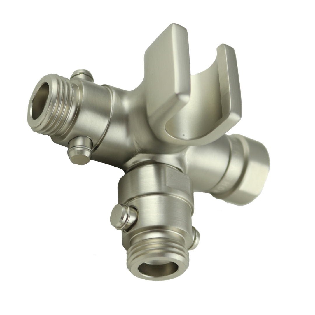HIGH SIERRA® manufactures a variety of solid metal handheld holders designed to perfectly meet the unique requirements of virtually any shower stall or tub surround. Choose between our standard holders, which connect exclusively to 45° shower arms, wall mounted holders that can be installed on either side of the shower arm at various heights, ADA-compliant holders that move up and down on a slide bar and lock in place at the desired height, and our one-of-a-kind holders integrated with our 3-Way and 4-Way combination shower adapters (also designed for use on 45° shower arms only).