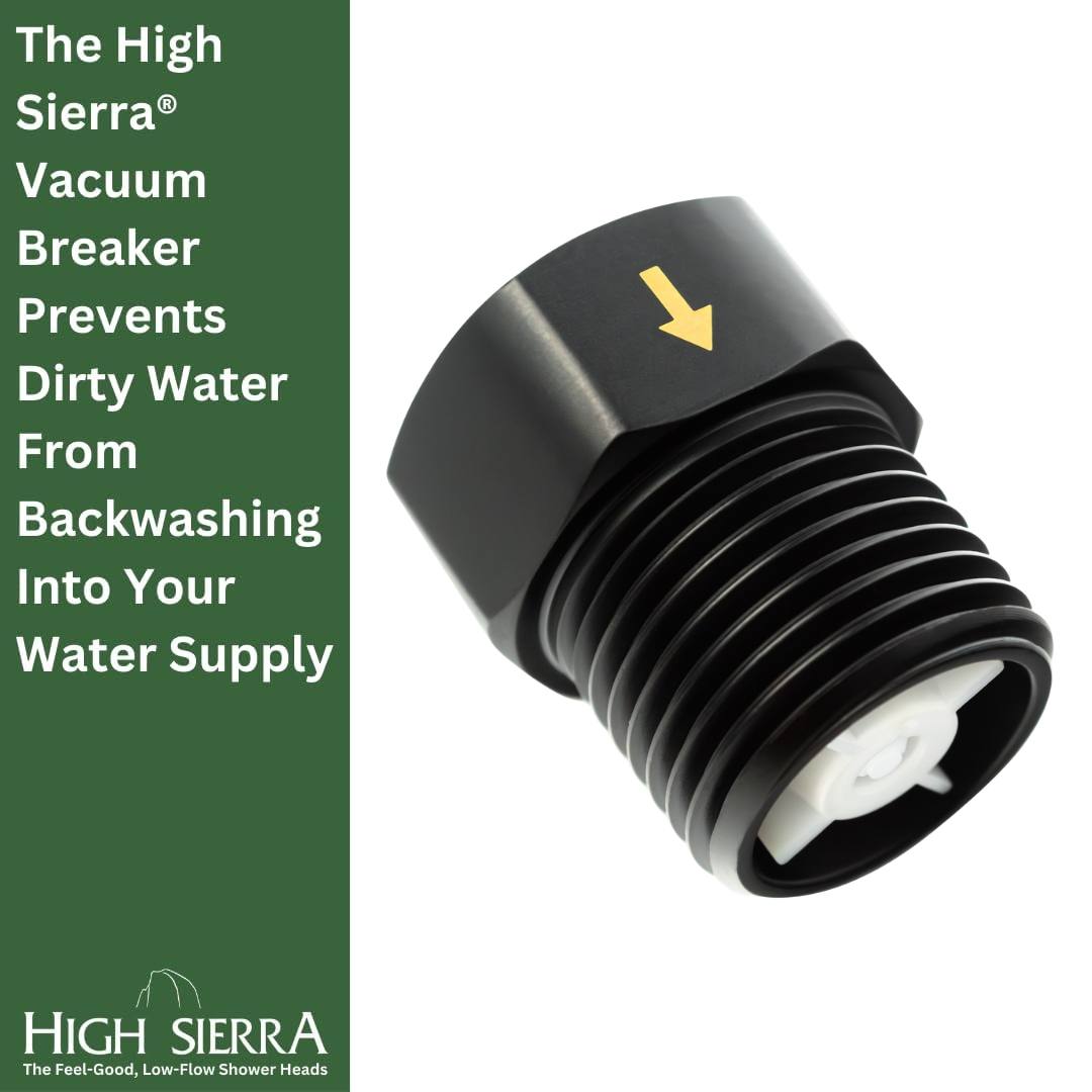HIGH SIERRA®’s solid metal vacuum breaker and backflow preventer is an essential safety component for any handheld shower system. Specially engineered to prevent contaminated water from flowing back into your home’s water supply, this compact but effective device is certified and compliant with national plumbing standards. It offers peace of mind for residential, commercial, and healthcare installations.
